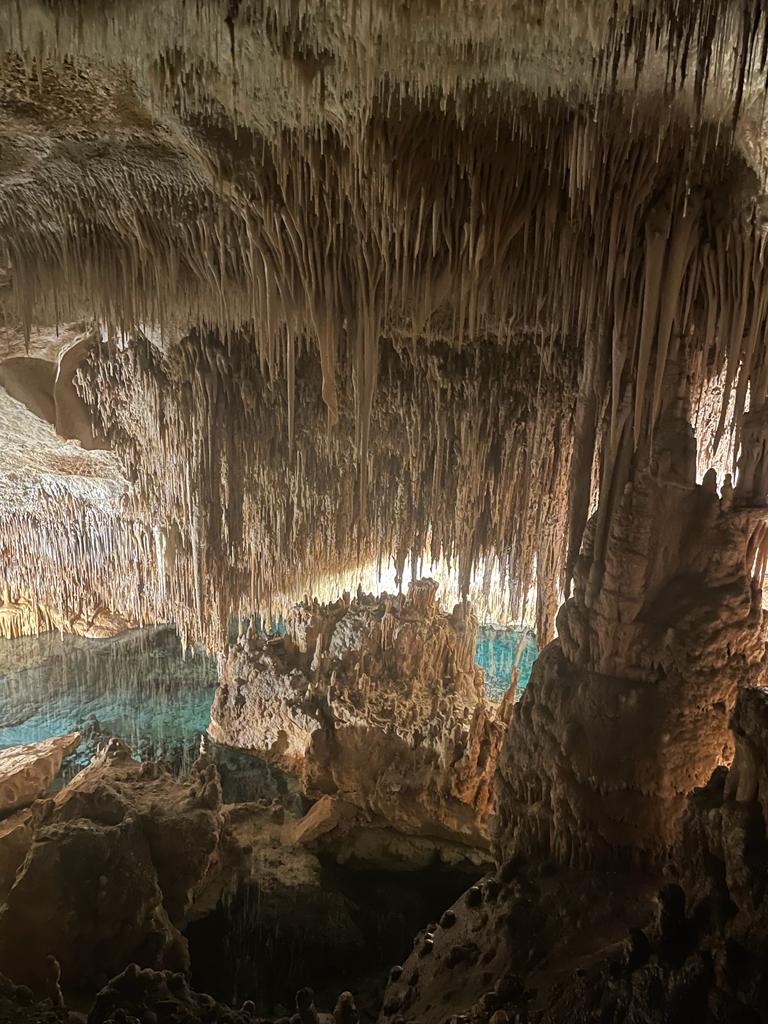 Le lendemain nous avons fait route jusqu’à Porto Cristo, un peu plus loin à l’est. Là-bas on a pris une place au port histoire de pouvoir profiter de la piscine de la marina. Au final on a regretté parce que l’eau était gelée 🥶! L’après-midi, nous sommes allés visiter la grotte du Drach. Cette grotte abrite le plus grand lac souterrain d’Europe, le lac Martel. Dans la Cuevas nous avons fait une balade d’une heure environ et à la fin du parcours nous avons assisté à une concert de musique classique dans la grotte. Les musiciens jouaient sur le lac à bord d’une barque. Il y avait deux violonistes, un violoncelliste et même un piano et sa pianiste 🎹. On n’a pas fait des photos parce que c’était interdit pendant le concert. C’est une bonne chose parce que comme ça tout le monde peut apprécier la musique et l’acoustique de cathédrale dans ce lieu insolite.