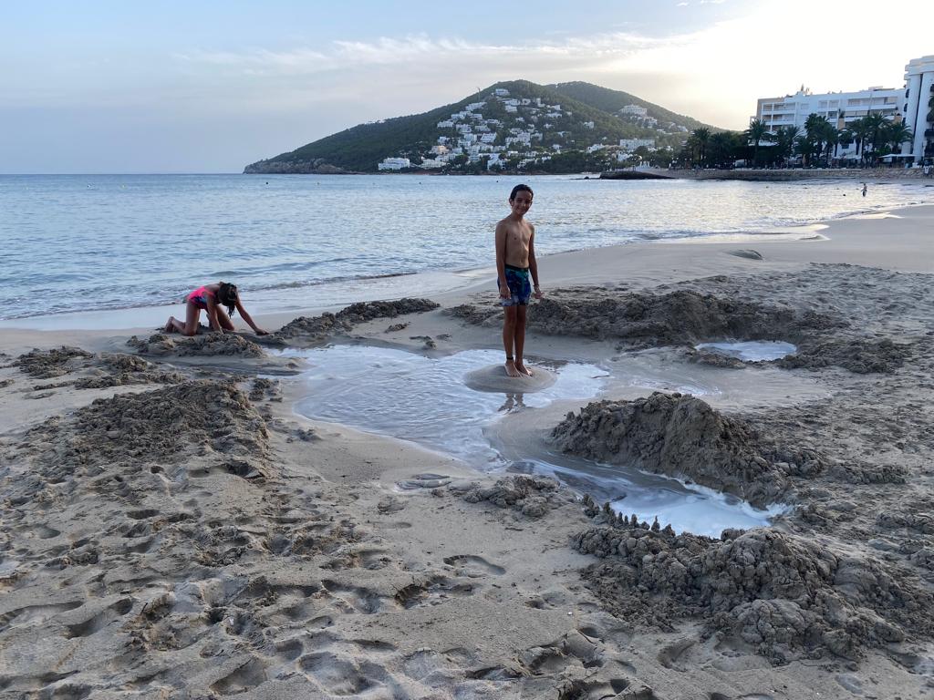Pendant ces deux dernières semaines, Papa est parti pour travailler à Scarlino en Toscane pour une régate de TF35 et ensuite à Protoroz en Slovénie pour une régate de 44 Cup. Avec Maman nous étions à la marina de Santa Eulalia, une jolie petite ville au sud de l’île d’Ibiza. Pour ceux qui s’inquiètent pour notre scolarité, nous avons travaillé tous les matins de la première semaine. 📙✍️ L’après-midi nous jouions à la plage 🏝 pendant que Maman bricolait sur le bateau. Un soir on était tellement occupés à creuser un lac dans le sable que nous avons oublié l’heure et Maman a eu très peur qu’on ait disparu! 😂