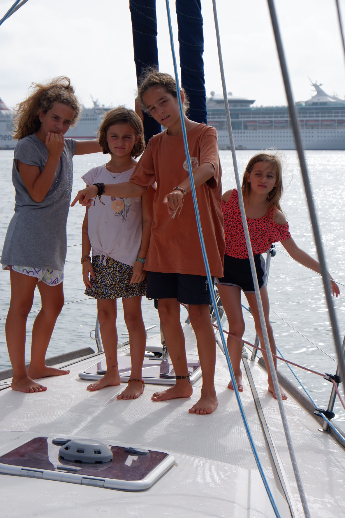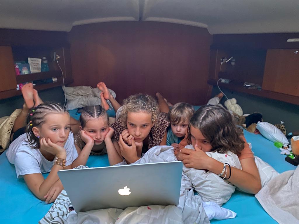 Mardi passé Olivia et Joy, nos cousines, sont arrivées avec Matthieu à Ibiza pour nous rejoindre à bord du Black Pearl. C’était trop cool de se retrouver et de leur faire découvrir notre maison flottante! Matthieu avait la moitié de sa valise pleine de trésors bien de chez nous : du Gruyères, du Vacherin Mont d’Or, des cervelas, du boudin, de l’Aromat, du Cénovis, du pinard, plein de chocolat et même des châtaignes pour faire une brisolée en mer 🌰!