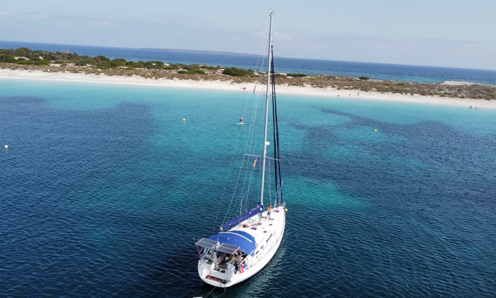 Le lendemain nous avons largué les amarres et nous avons navigué jusqu’à l’île de Formentera au sud d’Ibiza 🏝. En route nous avons vu un dauphin 🐬 : trop la classe comme début de croisière pour les cousines 🤩!