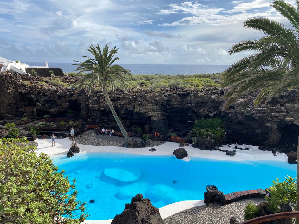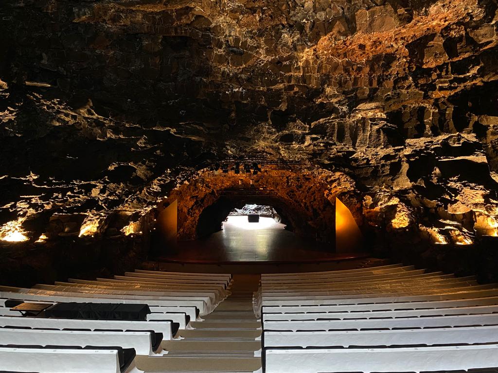 Mercredi on a fait une marche jusqu’au cratère de la Corona. Ensuite on est allé visiter los Jameos del Agua de l’artiste César Manrique. C’est un endroit dingue créé au bout des tunnels de lave formés pendant l’éruption de la Corona. Il y a un lac rempli de minis crabes albinos uniques au monde, une piscine où on a envie de se baigner mais on n’a pas le droit, un resto et une salle de concert. Finalement on est allés sous terre dans las Cuevas de los Verdes : c’est les tunnels de lave qui se trouvent entre la Corona et los Jameos del Agua.