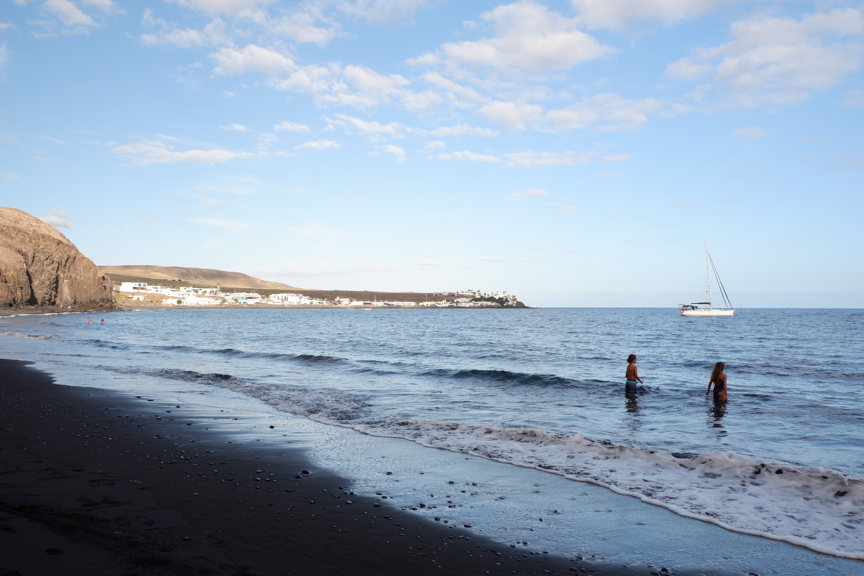 On a jeté l’ancre à playa Quemada où il y avait une plage de sable noir tout doux. On a fait les fous dedans avec Tanguy.