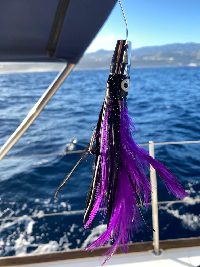 On en a profité pour remettre une canne à pêche, l’ancienne qu’on a gardée en réserve (on a bien fait! 😅). On a pêché une magnifique dorade coryphène qu’on a réussi à remonter à bord cette fois-ci!!! On l’a bâptisée Léonie! 🐠