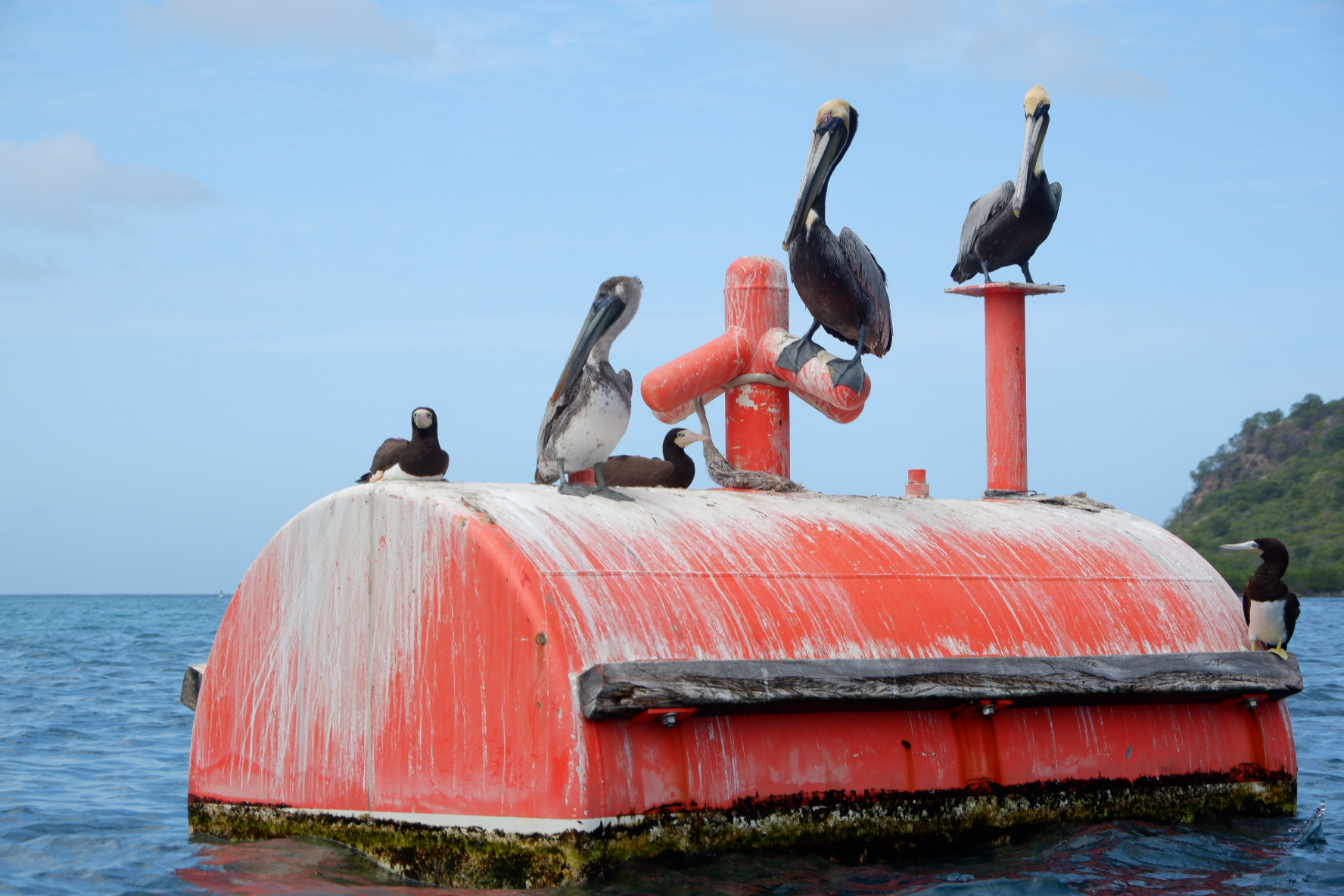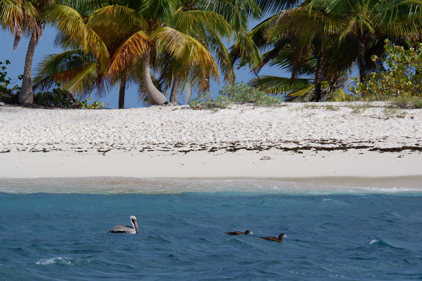 Mercredi et jeudi on a déplacé le bateau à Sandy Island : c’est l’île paradisiaque qu’on voyait depuis Paradise Beach. Elle porte bien son nom, il n’y a pas grand chose d’autre que du sable blanc et des cocotiers. Mais c’est pas grave, parce que le snorkeling était hyper bien et on a passé des heures à regarder les pélicans et les sulas pêcher.