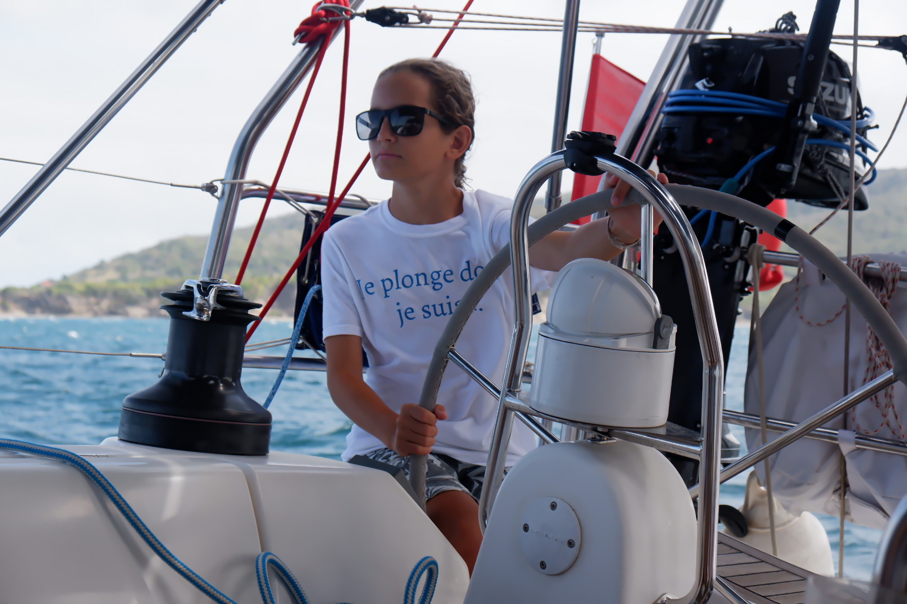 De retour au bateau, on est tout de suite partis vers les Tobago Cays, on avait trop hâte de nager avec les tortues! En arrivant sur les lieux, nous avons dû slalomer entre les récifs pour arriver au mouillage. On a trouvé une bouée juste à côté de la réserve marine pour les tortues!! Bref, la meilleure place, quoi 😎. Pendant qu’on mangeait, il y avait plein de tortues autour du bateau qui remontaient à la surface pour respirer, c’était trop chouette, on crevait d’envie de se jeter à l’eau!! Après avoir fait la vaisselle, on a filé voir les tortues… C’était MAGIQUE!!!!! On pouvait aller tout près d’elles et on nageait ensemble…….C’était incroyable 🤩🐢🤩🐢