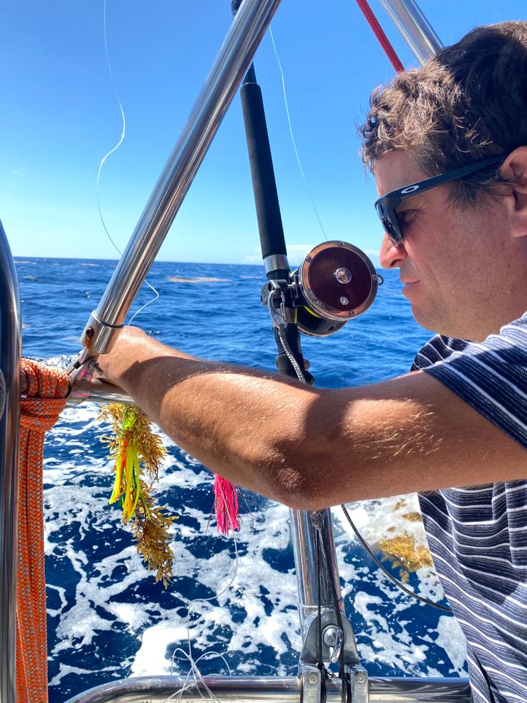 A Rodney Bay, on s’est juste arrêtés pour la nuit et pour retourner au bistro argentin «La Mesa» qu’on avait adoré 😋. Dimanche matin, on est repartis pour la Martinique. Ça fait longtemps qu’on n’a plus rien pêché et on espérait attraper quelque chose pendant cette traversée. Mais voilà qu’on s’est retrouvés dans la sargasse, comme au milieu de l’Atlantique… impossible de pêcher dans ces conditions, le leurre ramasse des touffes toutes les 5 minutes 😤.