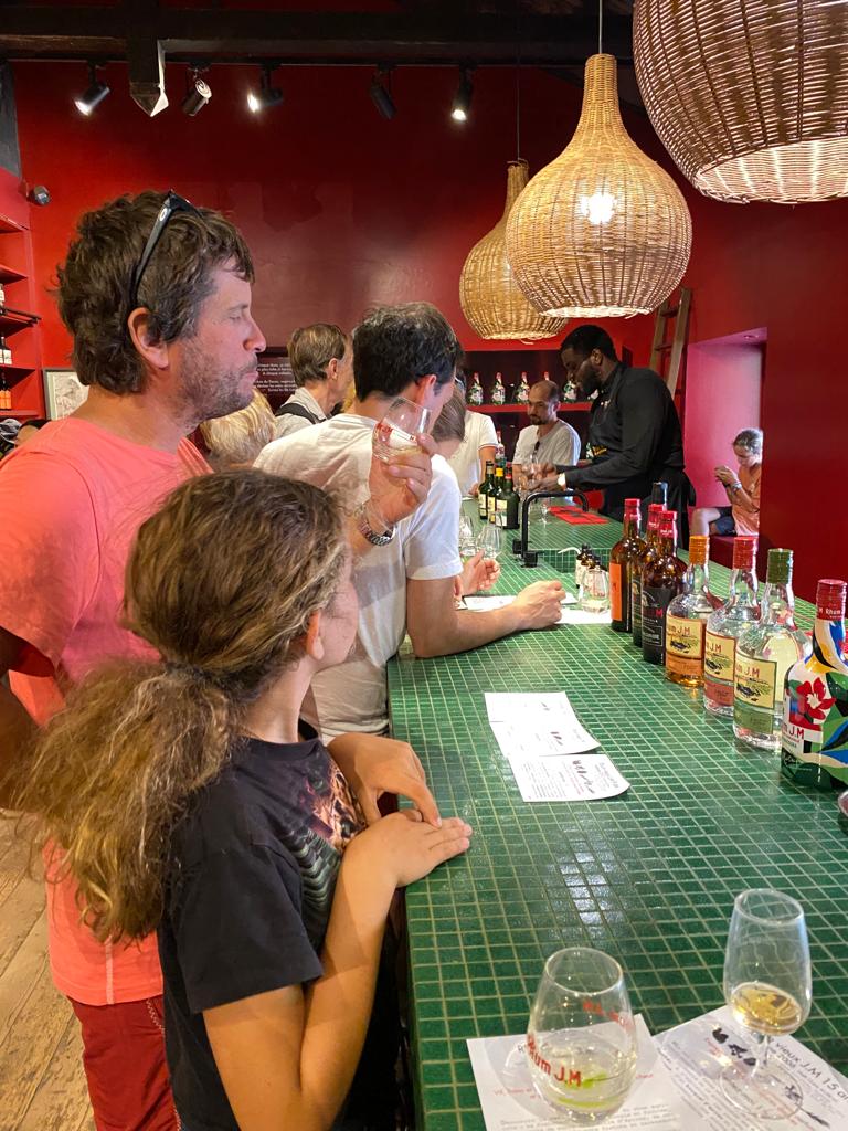 Passons aux choses sérieuses: la visite d’une rhumerie. Suivant les conseils de nos valaisans martiniquais, on a choisi le site J.M. L’endroit est magnifique, l’usine est dans une petite vallée dans la jungle avec une rivière qui coule de la Montagne Pelée et qui sert dans la production du rhum. La visite commence dans une salle qui raconte l’histoire de la rhumerie, puis on se balade dans l’usine en suivant les étapes de production: les moulins, les cuves de fermentation, la tonnellerie, les chais, le laboratoire et pour finir bien sûr, la boutique.😁 En résumé, pour faire du rhum agricole, tu broies la canne à sucre pour en extraire le jus que tu fais fermenter pendant 24 à 48 heures, puis le jus appellé vesou passe dans l’alambic et pour finir dans les tonneaux. A la boutique, Papa et Maman ont dégusté quelques rhums et moi j’ai cru que j’allais exploser quand j’ai à peine goûté le rhum blanc. 🤯 On a acheté une bouteille du cru de 2012 pour les 18 ans de Julie… il n’y en avait plus de 2010 pour moi… 😕