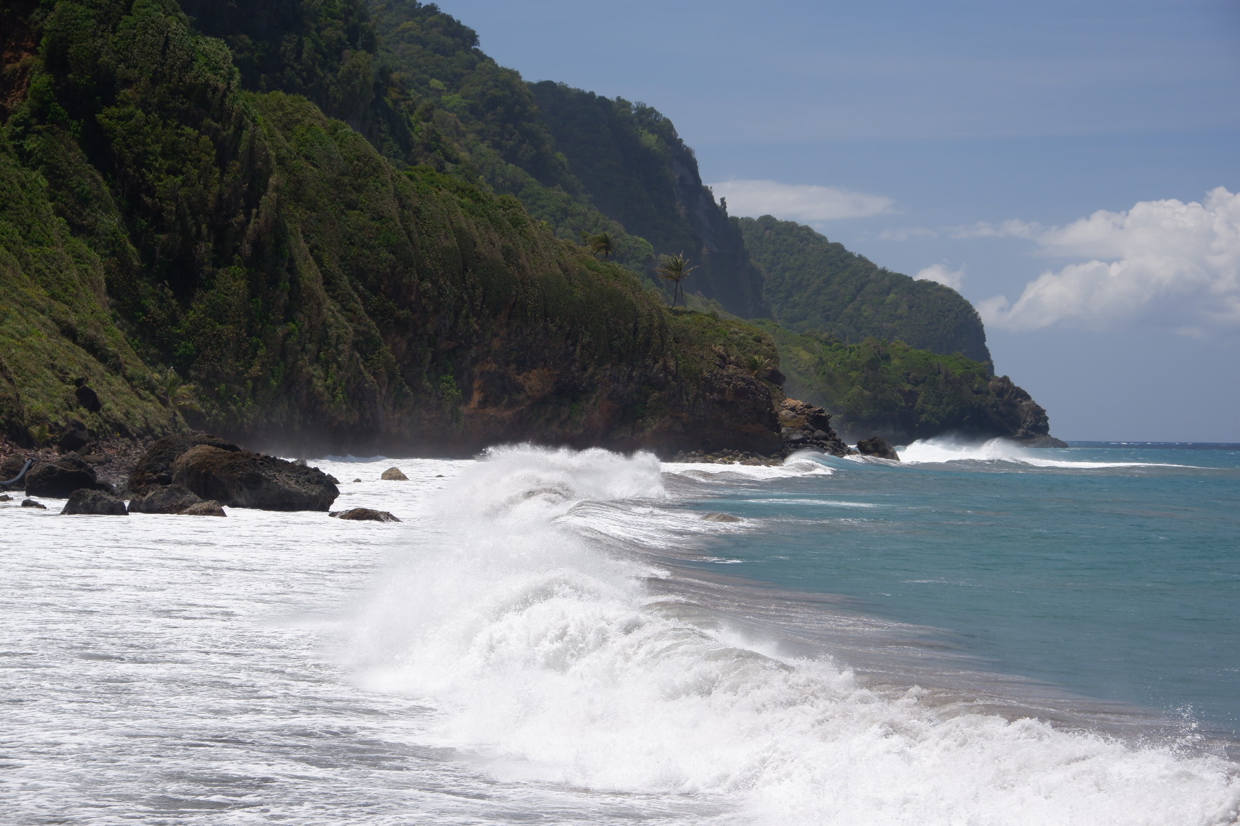 Mercredi, on a levé l’ancre avec pour destination St-Pierre au nord de l’île. Après deux heures de nav on est arrivés sur les lieux. C’est pas tout simple de mouiller dans la baie, parce qu’il y a vite beaucoup de fond et parce qu’il y a toute une zone d’exclusion remplie d’épaves. Ce sont les épaves des bateaux de la catastrophe de 1902: l’éruption de la Montagne Pelée qui a totalement détruit la ville et tué tous ses 28’000 habitants en seulement trois minutes… 🌋 Finalement on s’est mis à la meilleure place, au bord de la plage, juste à côté du ponton à dinghys. 😁 Ensuite on est allé visiter le bled et manger une glace.