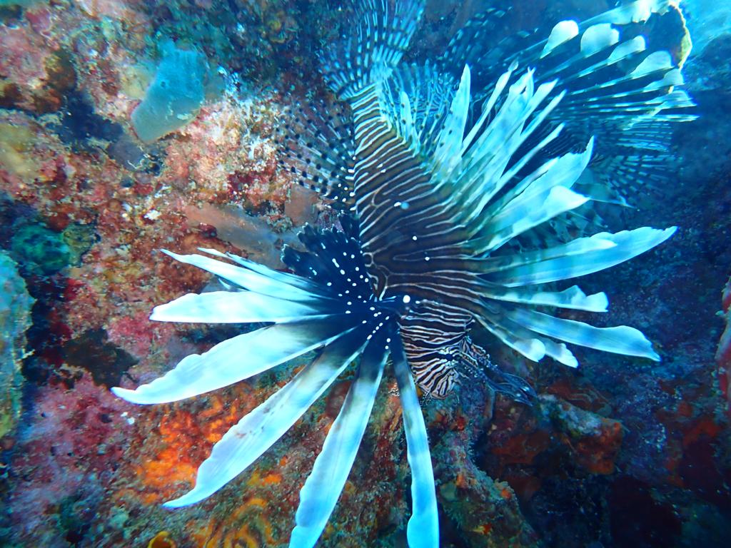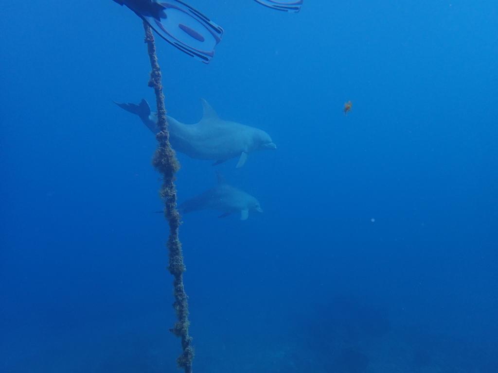 Une fois de retour sur le Black Pearl, les garçons sont allé plonger. Ils ont vu des éponges vase énormes et ils sont passés dans un tunnel, la faille du Grand Morne. Ensuite c’était à Maman et moi de plonger avec les bouteilles à moitié pleines. D’habitude, c’est nous les filles qui plongeons en premier… alors Maman n’a pas pensé à prendre plus de plombs… alors avec sa combi super épaisse, impossible de descendre! (Pour ceux qui ne plongent pas: les combis, plus elles sont épaisses, plus elles flottent et les bouteilles, quand elles se vident, elles flottent de plus en plus… donc il faut mettre plus de poids pour compenser tout ça 🤓). On a hésité d’abandonner et de retourner au bateau, mais Maman a eu l’idée de se lester avec l’ancre du dinghy 🤪😂. On n’est pas allées aussi loin que les garçons parce qu’il y avait un gars qui pêchait au harpon et on n’avait pas du tout envie de finir en brochettes 😵💫. Pendant qu’on faisait notre palier de sécurité à la fin de la plongée… ON A VU 2 GRANDS DAUPHINS 🐬🐬 C’ÉTAIT OOOOUUUFFF!!!!!!!!!🤩🤩🤩🤩🤩 Ils sont venus tellement près qu’on aurait pu les toucher… ça faisait presque peur parce qu’on ne s’y attendait pas du tout!!!