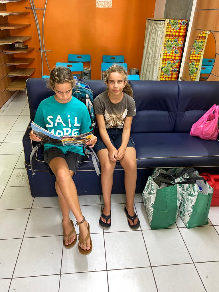 Vendredi, on est allés faire l’immigration dans un magasin de souvenirs (dans les îles françaises ça se fait toujours dans des endroits rigolos: à St-Pierre en Martinique, c’était dans un resto de choucroute alsacien 😜). L’après-midi, Tanguy et Maman sont allés plonger en bouteilles entières pendant que Papa et moi on graissait un winch. Les plongeurs ont vu des tonnes de poissons lion… et ILS ONT ENTENDU LE CHANT DES BALEINES 🐋🐋🐋!!!!!!!!!!!!🤩🤩🤩🤩🤩