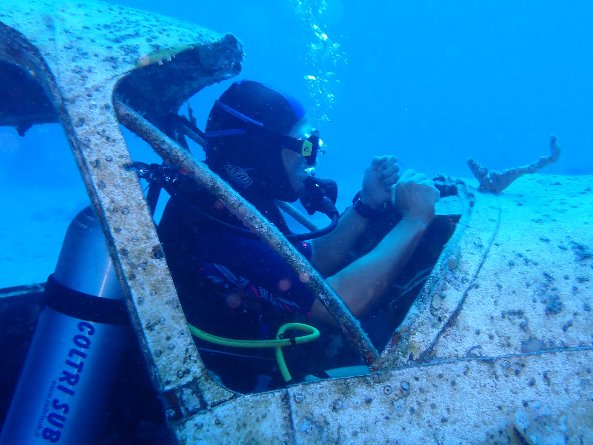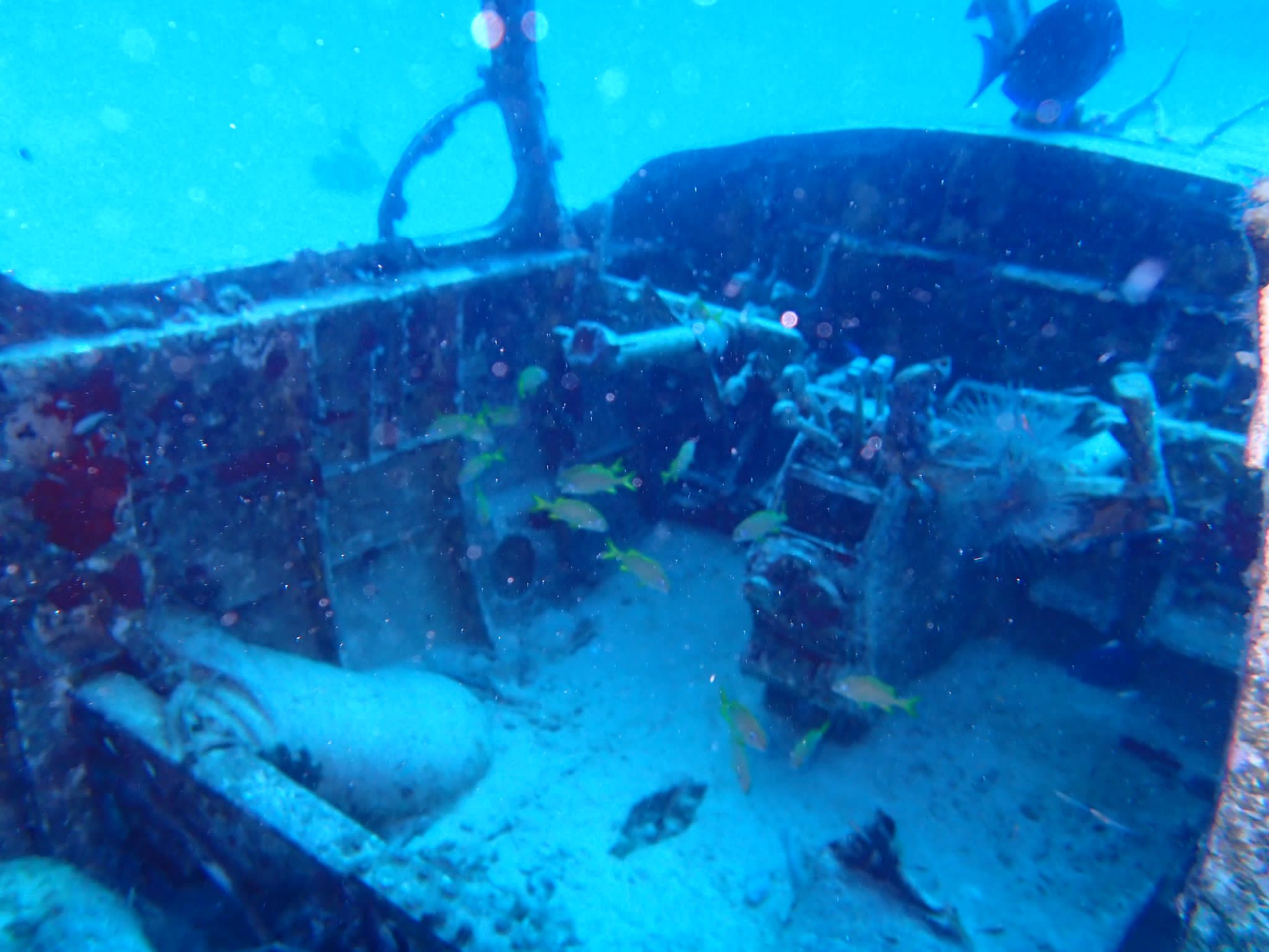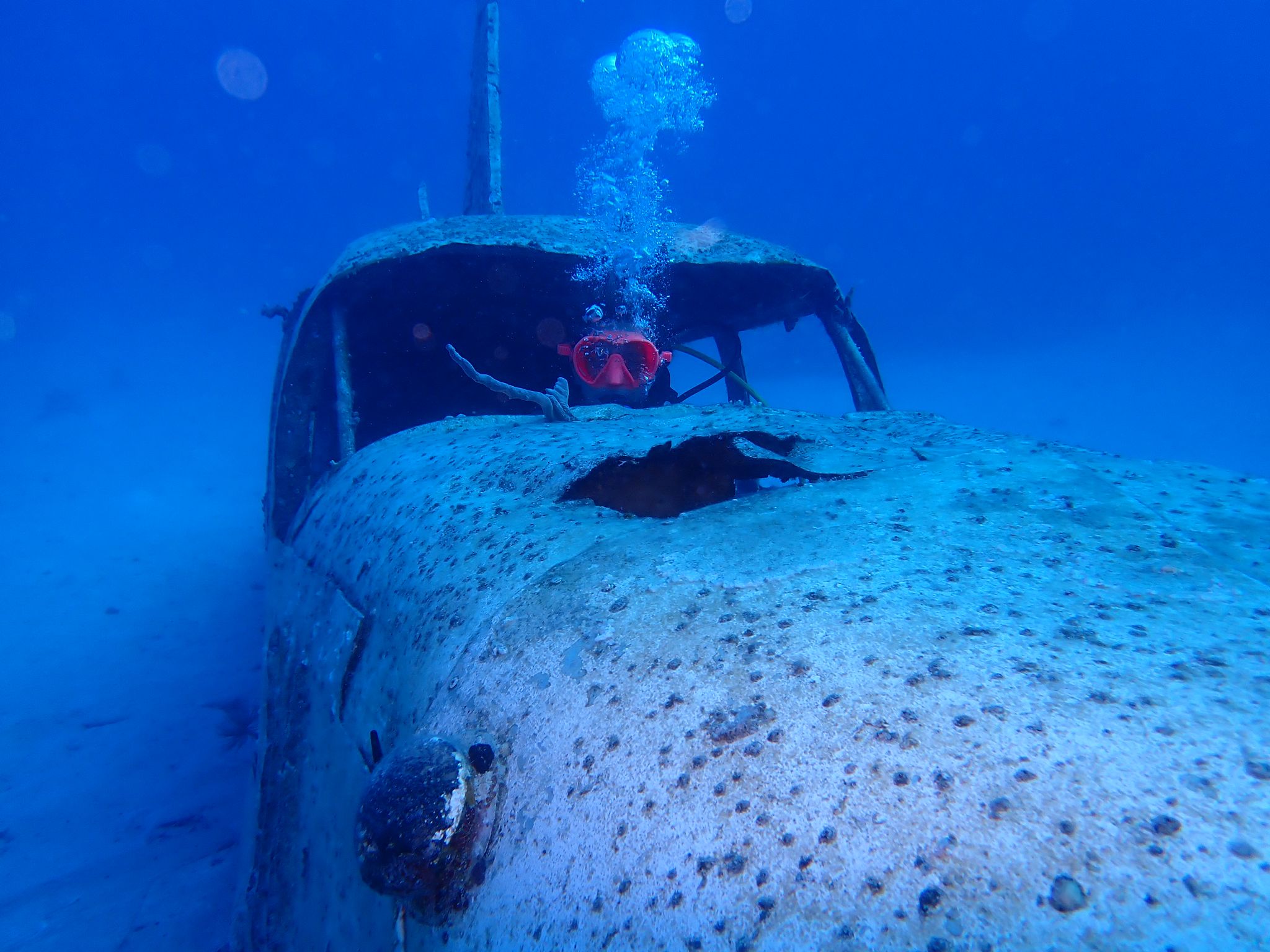 On a jeté l’ancre de nuit à Spanish Town, le bled principal de Virgin Gorda. Le lendemain matin, on est allés faire la clearance et acheter une carte SIM locale (92$ pour 12G de data 😱…). Ensuite, on a filé vers la petite île de Great Dog pour faire une plongée. Sur ce site ils ont coulé 3 épaves d’avions qu’un artiste a «déguisés» en requins, c’était trop chouette! L’eau est tellement chaude (32 degrés), qu’on plonge en maillot de bain… à part Maman qui est passée de sa combi 5.5mm à sa shorty – avec cagoule… le look d’enfer!!!! 🤣🤣🤣