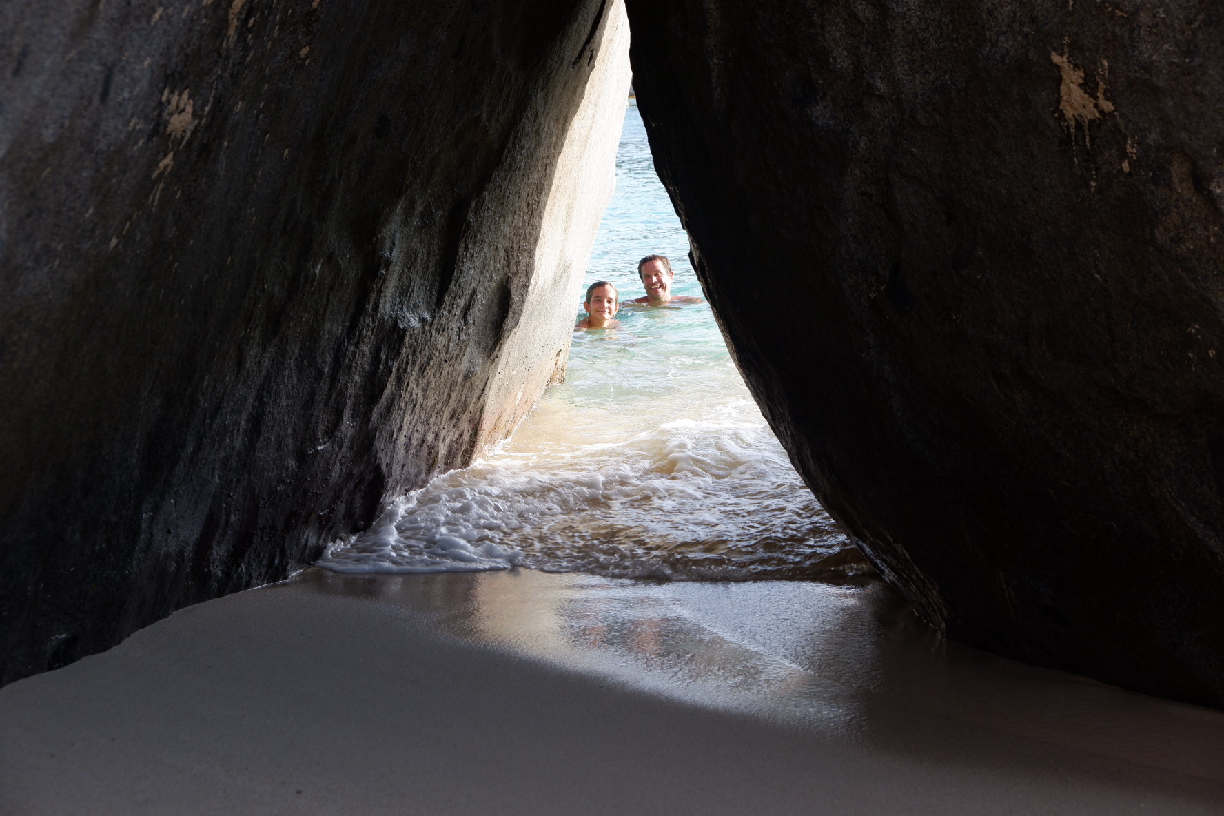 AprĂšs un Ă©chec aux Indians, on a voulu rĂ©essayer mais que pour du snorkeling parce quâon a vidĂ© les bouteilles de plongĂ©e Ă Norman Island. ArrivĂ©s lĂ -bas, câĂ©tait la bouillabaisse dâamĂ©ricains qui nageaient entre les cailloux, alors on a de nouveau abandonné⊠Nous avons mis le cap sur les Baths pour passer la nuit et du coup faire un snorkeling. En suivant les conseils de Matt, nous avons fait une balade entre les rochers dans des magnifiques cavernes et piscines naturellesâŠđ€©đ€©đ€© Le truc le plus cool, câest quâon Ă©tait tout seuls donc on pouvait faire les fous dans les tunnels et dans les petits passages tout Ă©troits!! On pouvait mĂȘme faire les mongoles et Ă©clabousser les murs! đ€Ș (Bon, pas trop quand mĂȘme, parce que Maman avait son appareil photo et si on le mouille⊠đ )