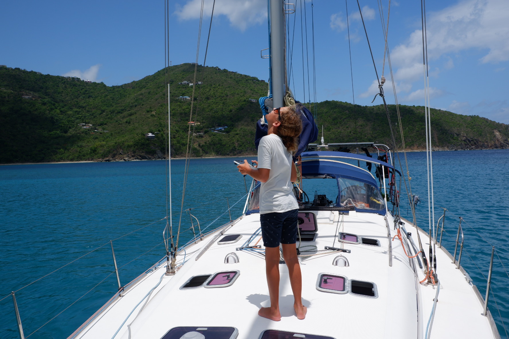 AprĂšs le petit dej, on a dĂ©roulĂ© le gĂ©nois pour aller Ă Sandy Cay, une toute petite Ăźle Ă lâest de Jost Van Dike. Le snorkeling nâĂ©tait pas incroyable mais câĂ©tait cool quand mĂȘme⊠En fin dâaprĂšs-midi, on est allĂ©s Ă Cane Garden Bay, sur lâĂźle de Tortola, pour que Matt puisse nous rejoindre et on sâest fait un bon bistro pour fĂȘter encore une fois lâanniv de Maman đ„.