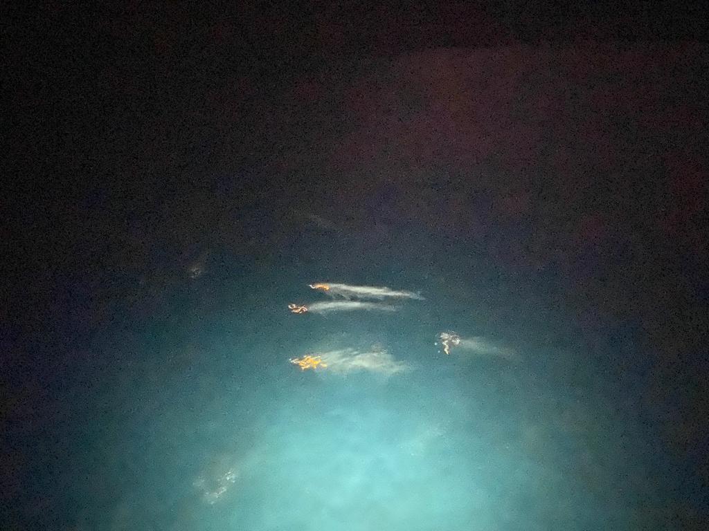 En rentrant du snorkeling, on a vu 17 Ă©normes tarpons qui glandaient sous le bateau. Heureusement quâils ne bougent quasiment pas, parce quâils font un peu flipper avec leur gueule de boule-dog fĂąchĂ© đ°. La nuit, pendant quâon jouait au jass, on a pu les observer en action. Il y avait une partie de chasse autour du bateau, les petits poissons friture Ă©tant attirĂ©s par la lumiĂšre et on voyait les immenses tarpons qui fonçaient avec leurs gros yeux qui brillent dans la nuit⊠ça ne donnait pas envie de faire un bain de minuit đ